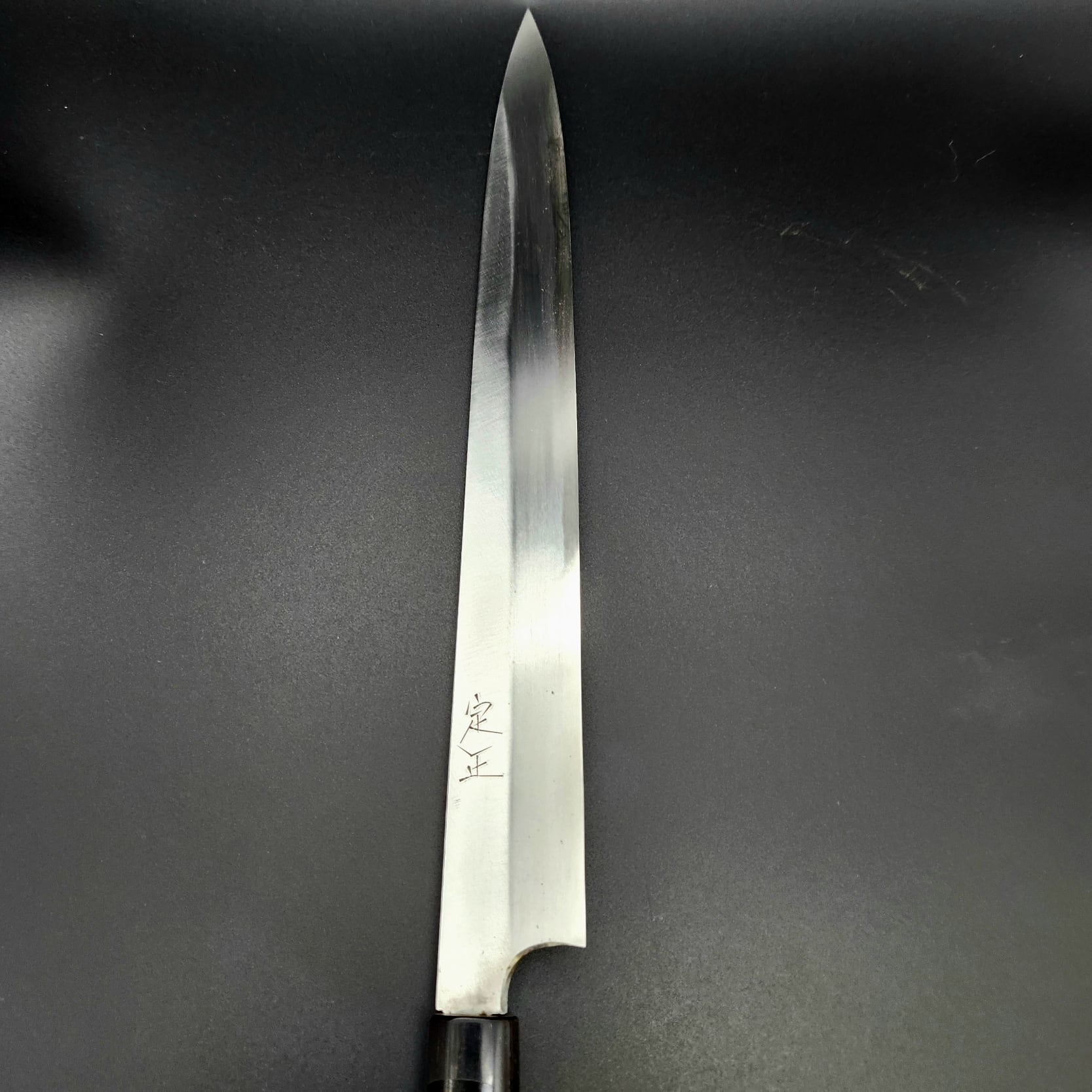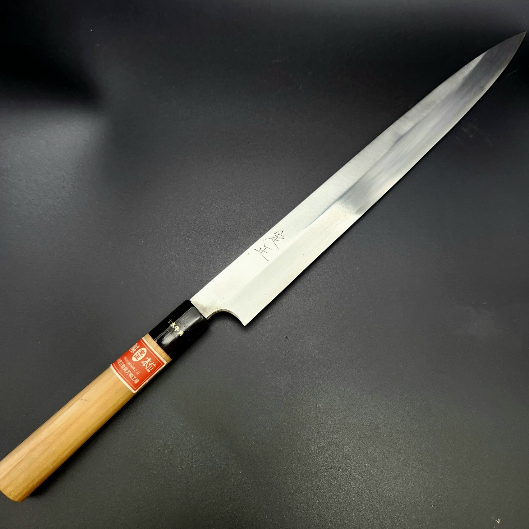 青紙2号という高品質な鋼を使用し、焼入れや研磨にも気を使って製作しています。その結果、切れ味が長持ちし、刺身用の薄い薄い切り身も綺麗に仕上げることができます。